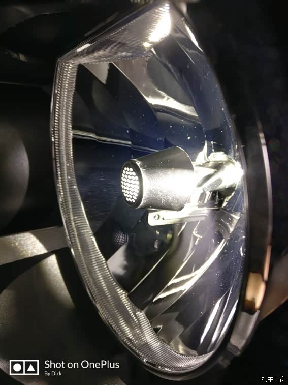 马三星骋氙气双光透镜的近光效果然后我们来看装了led灯头夏朗的,说明一下,没有透镜,但是铝质灯座上有切线,可以使反光杯反射光达到切线的效果。
