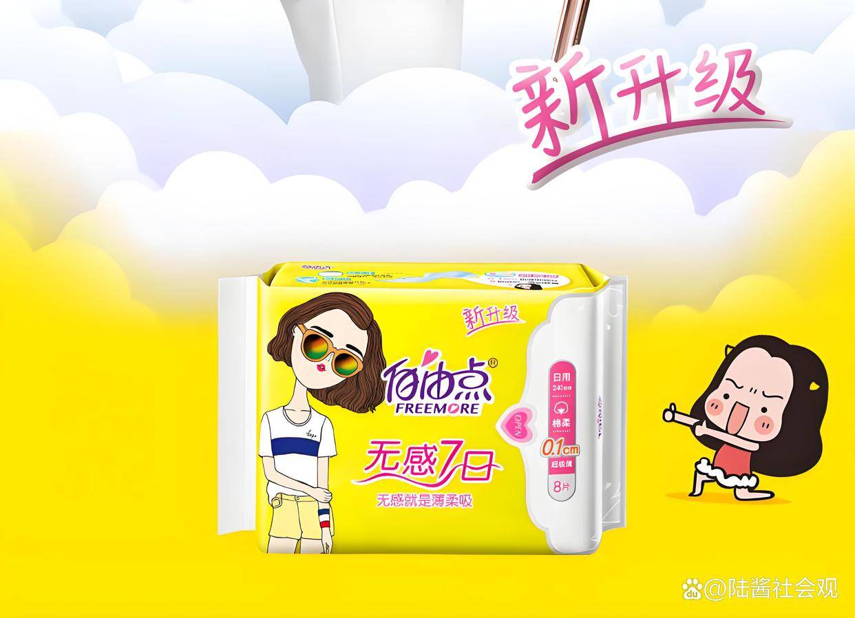 8. 自由点Free&Easy:自由点是中国重庆百亚的品牌,其产品设计注重无感体验,采用透气材料,减少生理期不适。