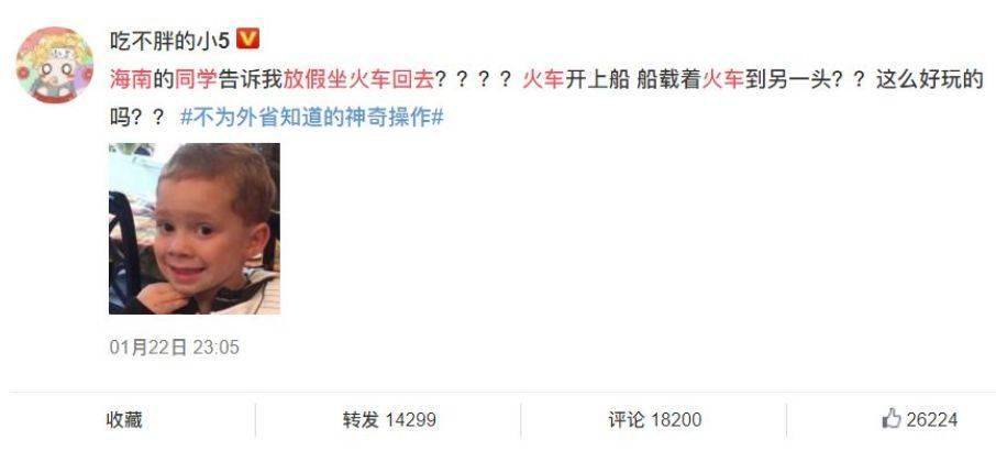 刚来海南上学时,听海南舍友说他们都是坐火车出省的,当时我就惊呆了!还有这种操作!我问他们可以从车厢内看到海吗?他们惊呆了!回答我:火车开到船的仓库怎么看海?!我又惊了一次,还有这种操作,那船是有多大???