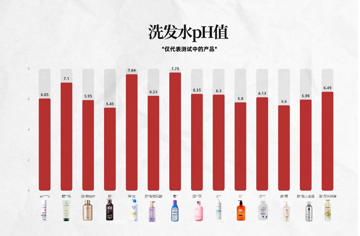 在这次测试的洗发水中,Exitans、哈恩、吕、遇见香芬、GA洗发水的pH值,均符合化妆品的标准要求,可以正常用,没有刺激性