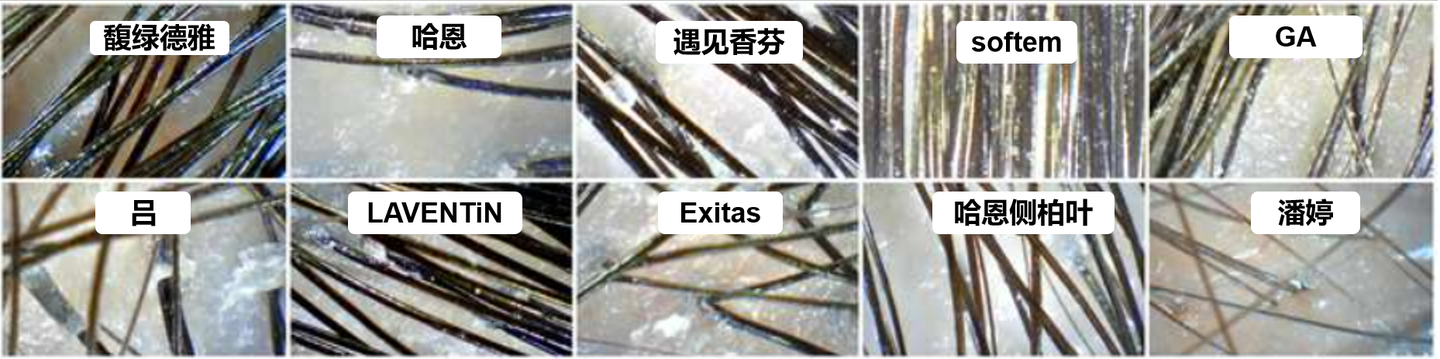 根据以上结果显示,其实跟前面测ph的结果差不多,基本是吻合的,哈恩、Exitans、lzq、吕、华巾大、遇见香芬、GA这几款洗发水的沉淀物比较多,说明刺激性很低。