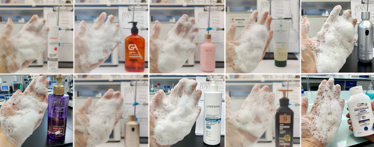 10款洗发水最终的起泡量和泡沫质量结果总结如下: