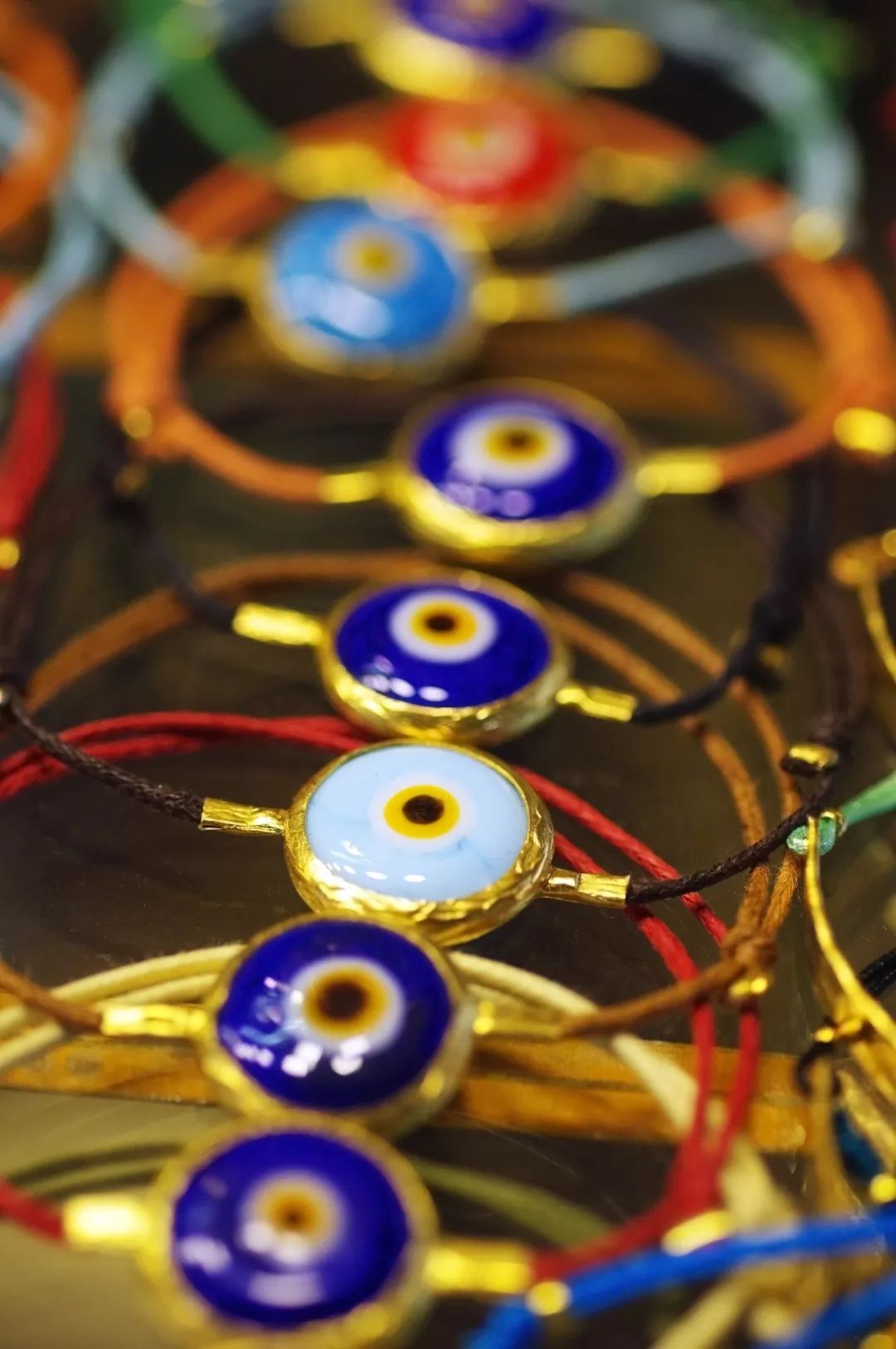 ▲在土耳其,有一种镶嵌着“黑眼球”的蓝色玻璃饰品几乎是随处可见。土耳其人称为“纳扎尔”,中国人称之为“蓝眼睛”。人们喜欢“蓝眼睛”,相信它能“辟邪”。