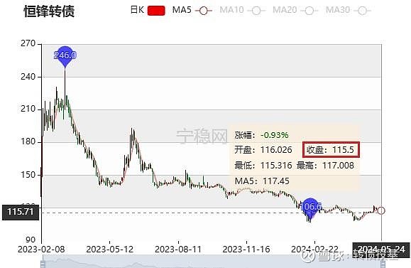 我们看到,历史最高价246元,历史最低价106.6元,5月24号收盘价115.5元!