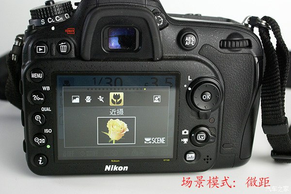 SCENE 场景模式。有人像、风景、微距、运动、夜景等模式可供选择。对于摄影技术尚不熟练的人不妨一用,例如 人像模式,会自动设置浅景深,曝光会略过一点。