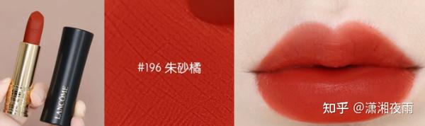 196是胡萝卜色,也是朱砂橘色,人气断货王。这个系列兰蔻菁纯丝绒雾面哑光口红,雾面哑光超显白,高饱和度,浓郁显色。上嘴后会突显红调,整体非常提气色,而且不挑肤色。