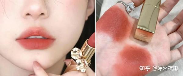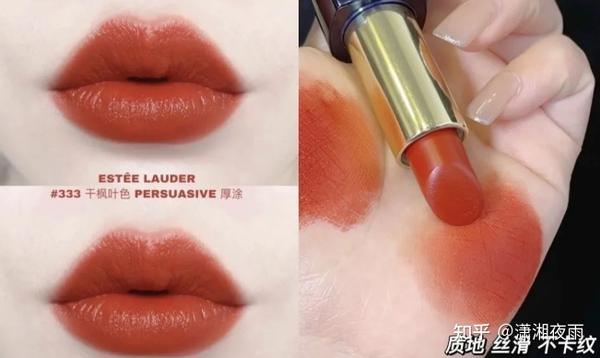 他家的另一款柔雾小金管333,是枫叶红的鼻祖,非常知性的气质色!哑光质地,膏体顺滑上唇自带高级感,巨显白的偏红棕色调。薄涂是很流行的奶茶色,上班族学生都可涂,厚度就是很好看的枫叶红,简直是约会神器。
