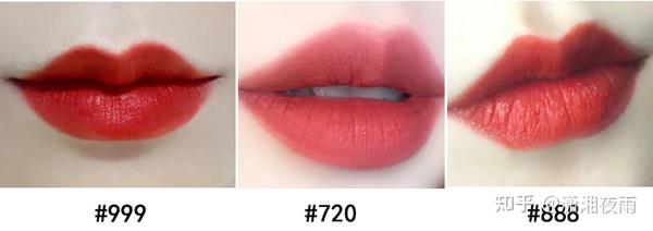 https://xg.zhihu.com/plugin/d06989d61875bdb89a9c692a384e2ba9?BIZ=ECOMMERCE720和888都是同链接下的型号:720是棕红豆沙色,超温柔又显白的色号,就算是日常素颜涂也完全没问题,属于气质挂的那种文艺豆沙色。888是继999后又一网红色号,但比999更显年轻活力,尤其是对黄皮的女孩子很友好。薄涂是近乎自身唇色的粉嫩感,厚涂暖橘红色,非常温柔的色调。
