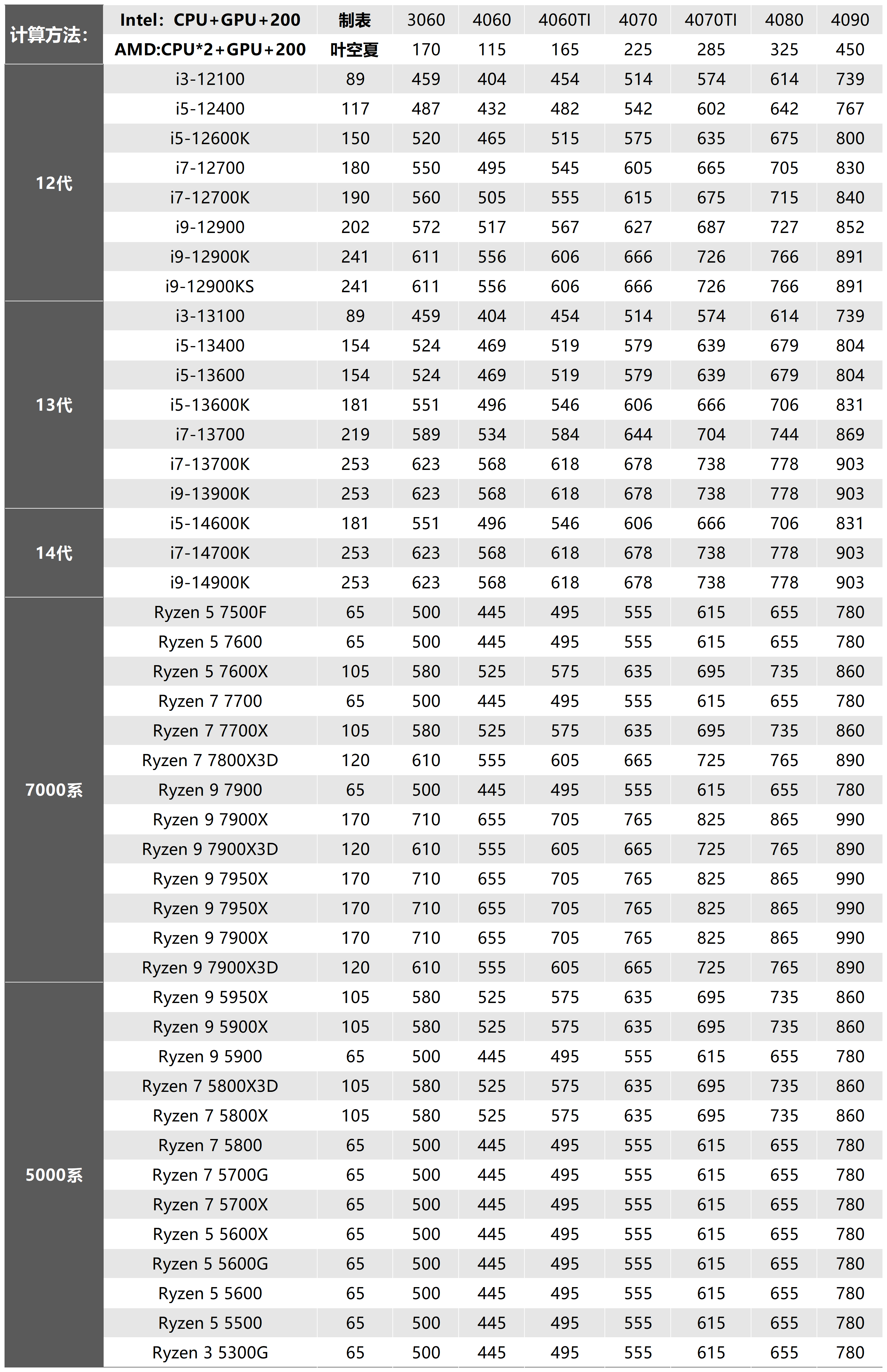 目前上电脑电源功率计算的公式有好几个,这个拟合过是最接近英伟达推荐使用的电源大小的,直接用cpu显卡功耗例除以60%那个会导致计算出来功率明显太大,必须留冗余,大小建议最少不低于100w,已经见过不少头铁的兄弟直接用显卡+CPU来定电源功率,结果半年后经常黑屏重启。