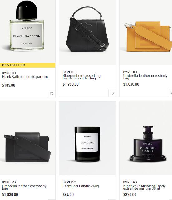 Selfridges网站简介】Selfridges是一家英国的高档百货公司,由哈里·戈登·塞尔福里奇创始于1909年。其位于伦敦牛津街的旗舰店在1909年3月15日开业,现在是仅次于哈洛德百货公司的英国第二大百货商店。它汇聚了众多的大众流行品牌及设计师专柜,产品种类非常齐全,涵盖了包包、男女装、手表、美容护肤、珠宝首饰、家居等等, 包含 Burberry、Armani、Chanel、Saint Lauren、Dior、Valentino、Alexander McQueen等众多一些品牌,早已成为全球时尚达人每年必逛的地方,更是来英国旅游的游客必须前往的购物天堂。Selfridges上除了有byredo产品非常多,除了香水,香薰蜡烛,洗手液,护手霜等,还有包包!
