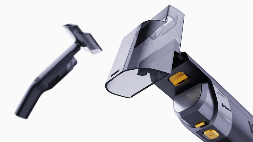 在生活水平高度现代化的今天,对不少城市家庭而言,吸尘器已经成为了清洁家庭的必备小家电,这是一款创新的便携式吸尘器,将双管猎枪的换弹方式和吸尘器清理灰尘的方式结合,人性化的握持方式和创新的处理倾倒方式,造型简洁,操作简单,富有科技感。