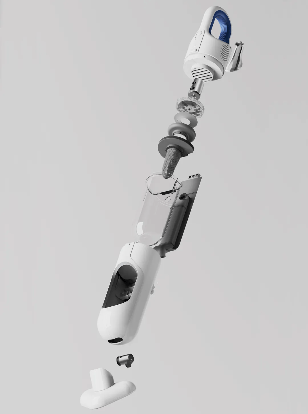VITA是一款家用吸尘器的设计,目的在于设计一款从功能性出发,能适用于不同家居清洁场景的家用清洁产品。造型上从功能尺寸出发,放弃多余的造型和装饰,着力于合理外观尺寸和用户体验,造型语言上极力平衡智能产品的科技感和家居产品的人文化,用最简单朴素的方式接近用户需求。