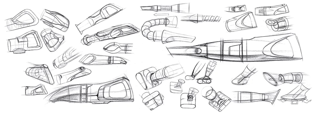 DJI HOOVER是全球无人机市场的领导者。全球近70%的无人机是大疆制造的。他们的设计语言非常有趣。所有的形式都与自然元素有某种联系。这里的目标是设计一款与品牌形成对比的产品。所以我们决定用大疆的品牌语言设计一款手持式吸尘器。