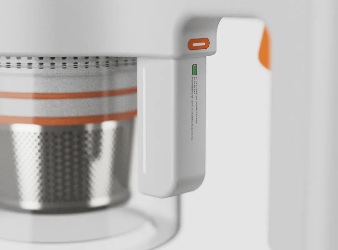 这款手持式吸尘器设计简洁现代,以白色为主色调,搭配橙色和灰色装饰,显得时尚大方。其吸头设计独特,圆形按钮“JETBOAT”可能代表其特殊功能。底部USB接口便于充电,显示了其便捷性和实用性。整体来看,这款吸尘器非常适合现代家庭使用。