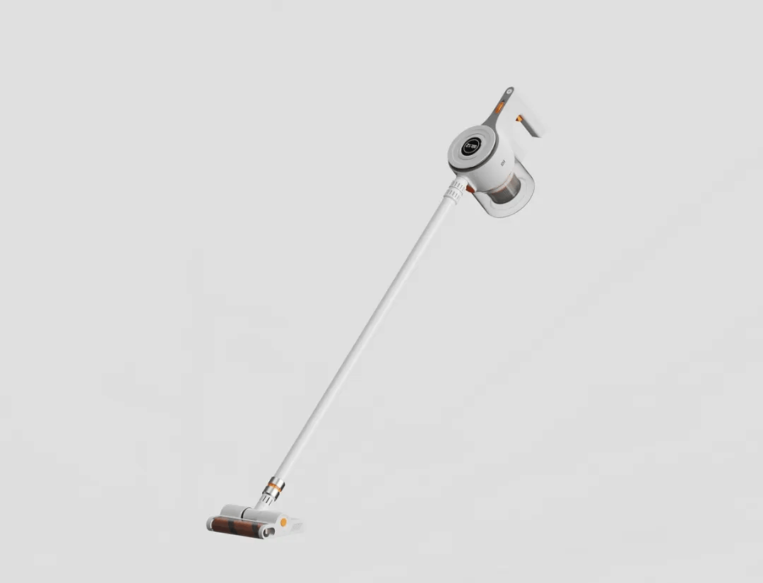 这款吸尘器设计简洁且现代,白色主体搭配橙色和灰色装饰,时尚又实用。长管配灵活旋转的吸嘴,方便清洁各种角落。弯曲把手提供舒适握感,易于操作。小型电动机和可调节软管连接件增强了其功能性。整体而言,这款吸尘器是家庭清洁的理想选择。