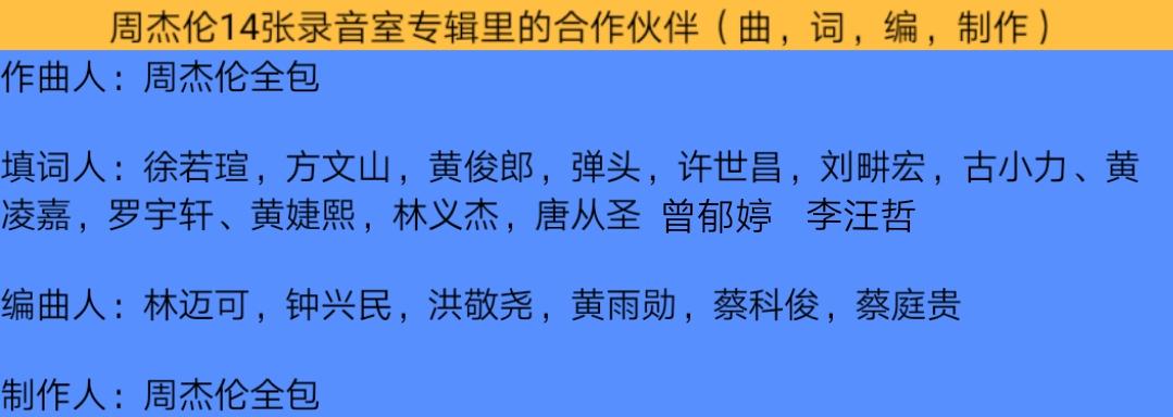 这就是那三家粉丝经常挂在嘴上的周杰伦能一骑绝尘完全靠团队(笑)。