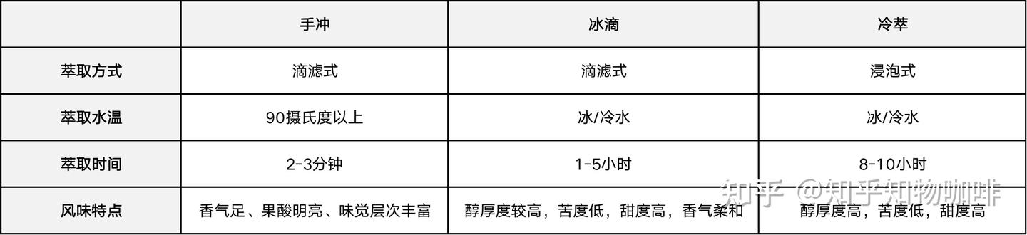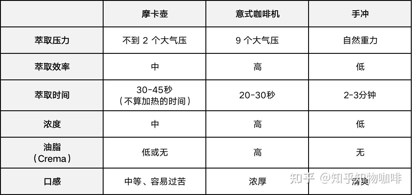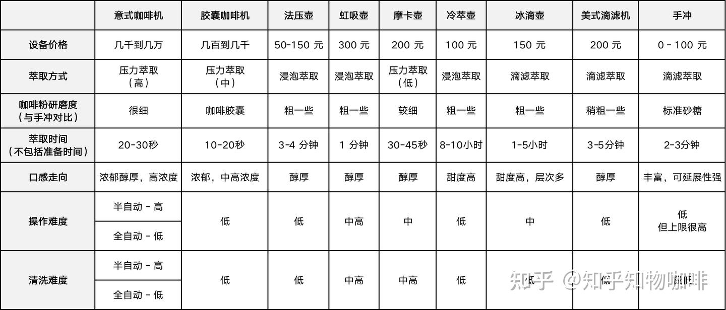 首先,一张图概括不同的咖啡冲煮方式的优缺点。详细讲解请下滑阅读~