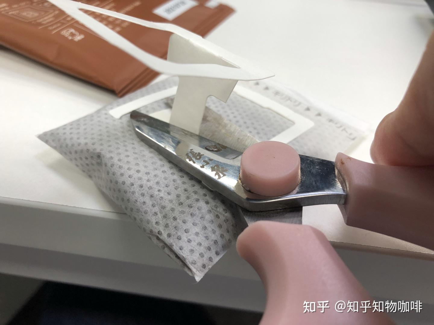 步骤一:将挂耳包从铝箔袋中取出,并减去两边的小纸片;