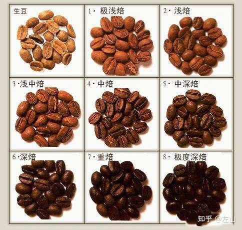 黄金段位:不同的烘焙程度决定了咖啡豆的口感和风味。咖啡豆的烘焙主要分类是什么?通常来说,咖啡豆的烘焙程度可以分为浅度烘焙、中度烘焙和深度烘焙。也可细化为8个程度。中度烘焙的咖啡是日常生活中最常见的类型,是制作拿铁、美式咖啡等常见咖啡饮品的常用选择,这种烘焙程度能够突出咖啡豆的焦糖化和巧克力风味,口感柔和浓郁,酸苦平衡,适合大多数人的口味。深度烘焙的咖啡通常用于制作浓郁的意式咖啡,如摩卡、焦糖玛奇朵等,突出咖啡豆的焦糖化和烟熏风味,口感浓郁苦涩,几乎没有酸味,适合喜欢重口味的人。(不要背哈,看图能懂就行了)