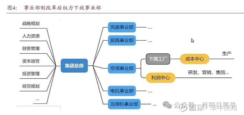 同时,总部将赚取利润的责任下放至事业部,只保留财务、投资以及高层职业经理人的任免权。每个事业部成为了利润中心,下属工厂以成本为中心,独立经营、独立核算,完全是以市场为主导的组织架构。
