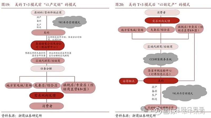 引入并发扬光大,小天鹅的T+3模式,以销定产,柔性制造,提升全价值链效率。美的通过T+3 模式“以销定产”提高渠道供销效率,改变以往的渠道压库模式。