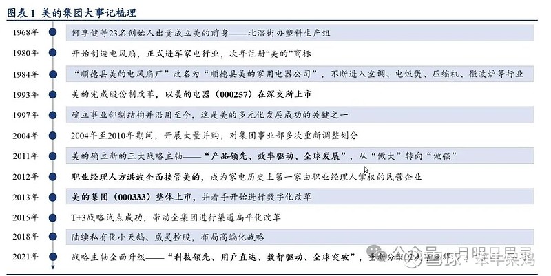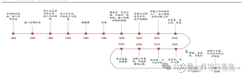 1980年,开始制造风扇,进入家电行业;1981年,注册“美的”商标,标志美的品牌诞生。