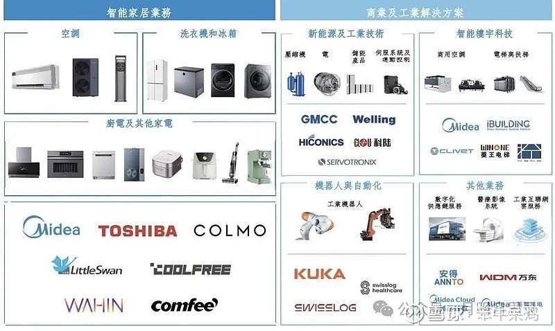 目前美的分为五大业务矩阵:智能家居、新能源及工业技术、智能建筑科技、机器人与自动化及其他创新业务。