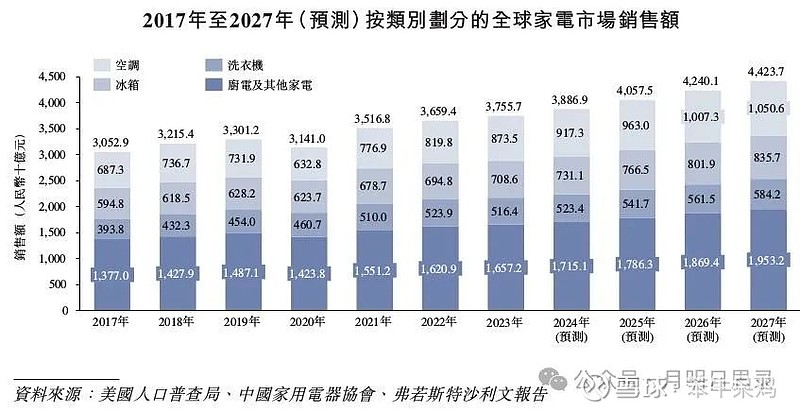 冰箱2017-2023CAGR为2.96%,预计2023-2027 CAGR为4.2%,