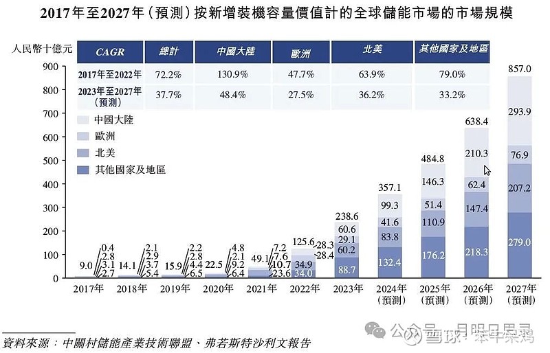 储能市场的增长,受益于可持续能源在全球发电市场的份额不断增加,以及各主要经济体出台鼓励生产和安装储能设备的有利政策。