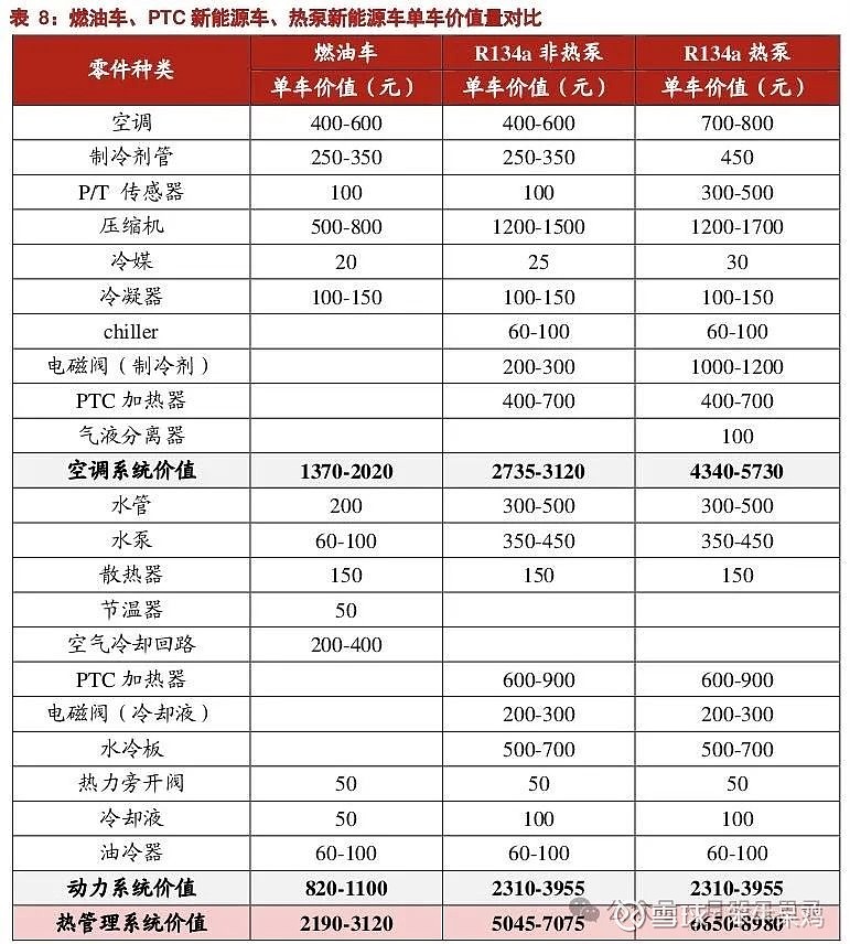 因此新能源汽车的热管理系统,是三者结合的系统,单车价值量高于普通燃油车。