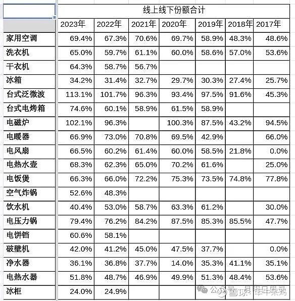 看一下主要产品的线上线下合计份额变化趋势