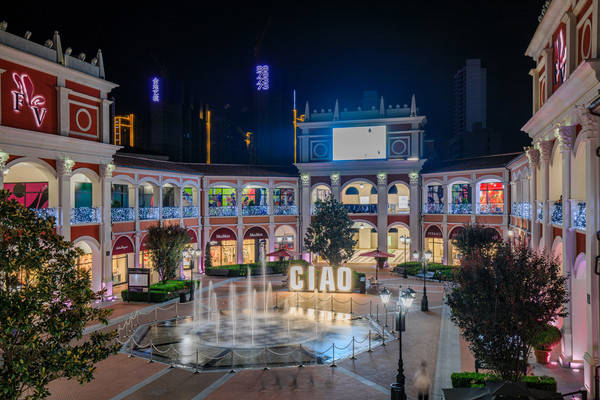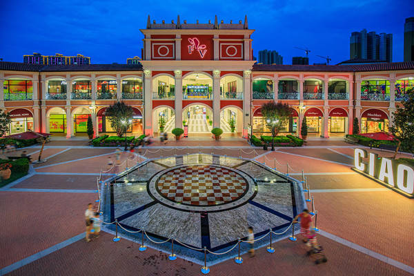 远离了白天的阳光,夜晚中庭的喷泉更加璀璨夺目,此刻到此购物游玩的游客也不在少数,甚至有不少是下了班特意带家人和孩子来欣赏夜景的。