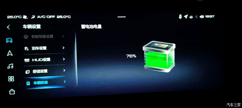 由于之前就提前了解过升级前的注意要点,知晓电瓶电量需维持在 75% 以上,所以上车后的首要任务便是查看电瓶电量,76%,一切准备就绪。