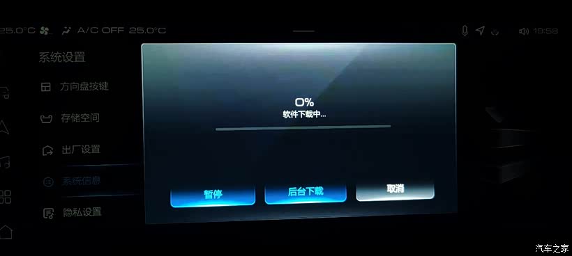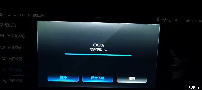 刚开始,这下载安装包的速度着实让人着急,眼巴巴等了 2 分钟,进度居然还是 0%,我估摸着是 4G 网络的网速拖了后腿,当机立断按下后台下载,打开手机热点分享给车机。再次从系统更新界面切入,嘿,这下进度条总算从 0 挪动到 1 了。