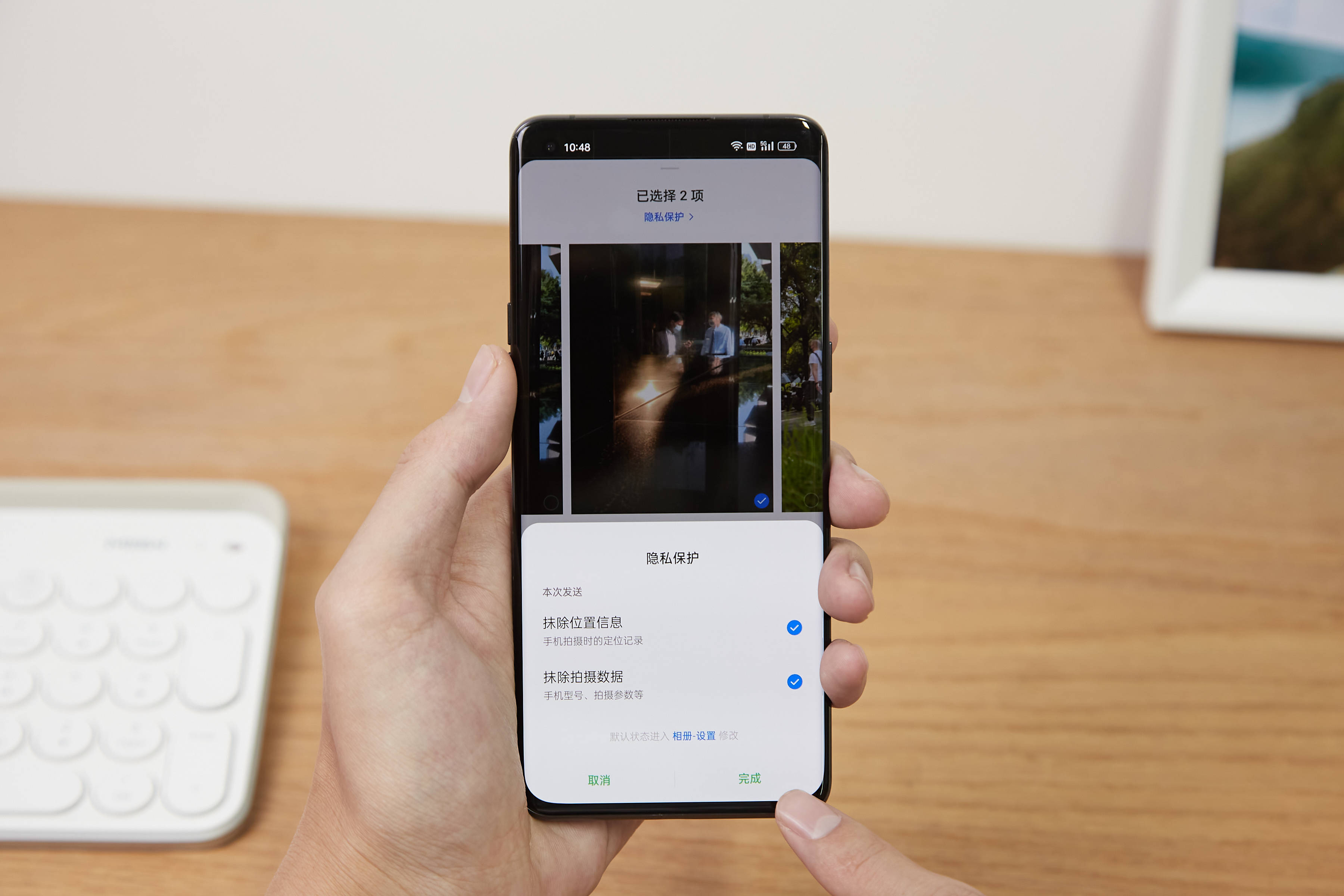 除此之外,我们日常拍摄的照片,会包含时间、地点和拍摄的设备信息,这些通称为EXIF信息,而在我们的分享中,EXIF信息会被一并分享出去,如果被有心人利用同样会造成隐私泄露。在OPPO Find X5 Pro的图库上,我们可以设置隐私保护,在分享的过程中自动抹除相应的信息,不用担心隐私在不经意间就被泄露了。