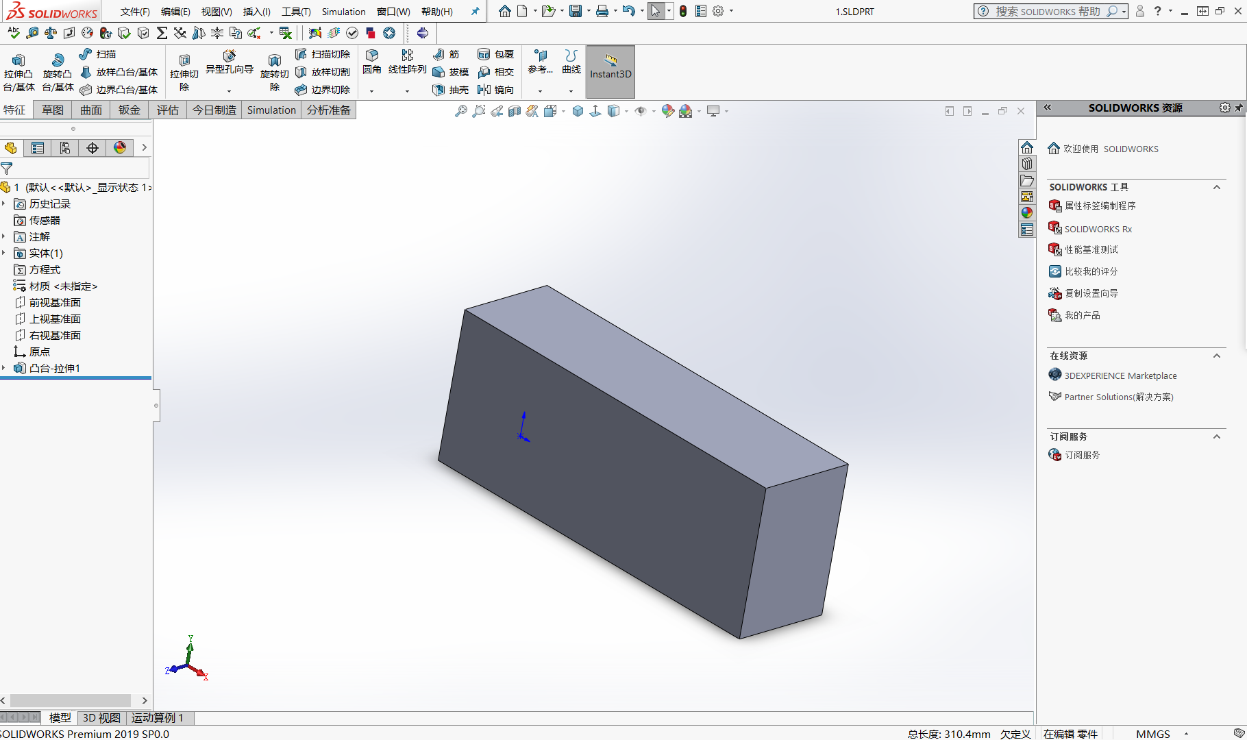 12.在SW中随便建一个模型,并保存一下(最好以英文名保存)