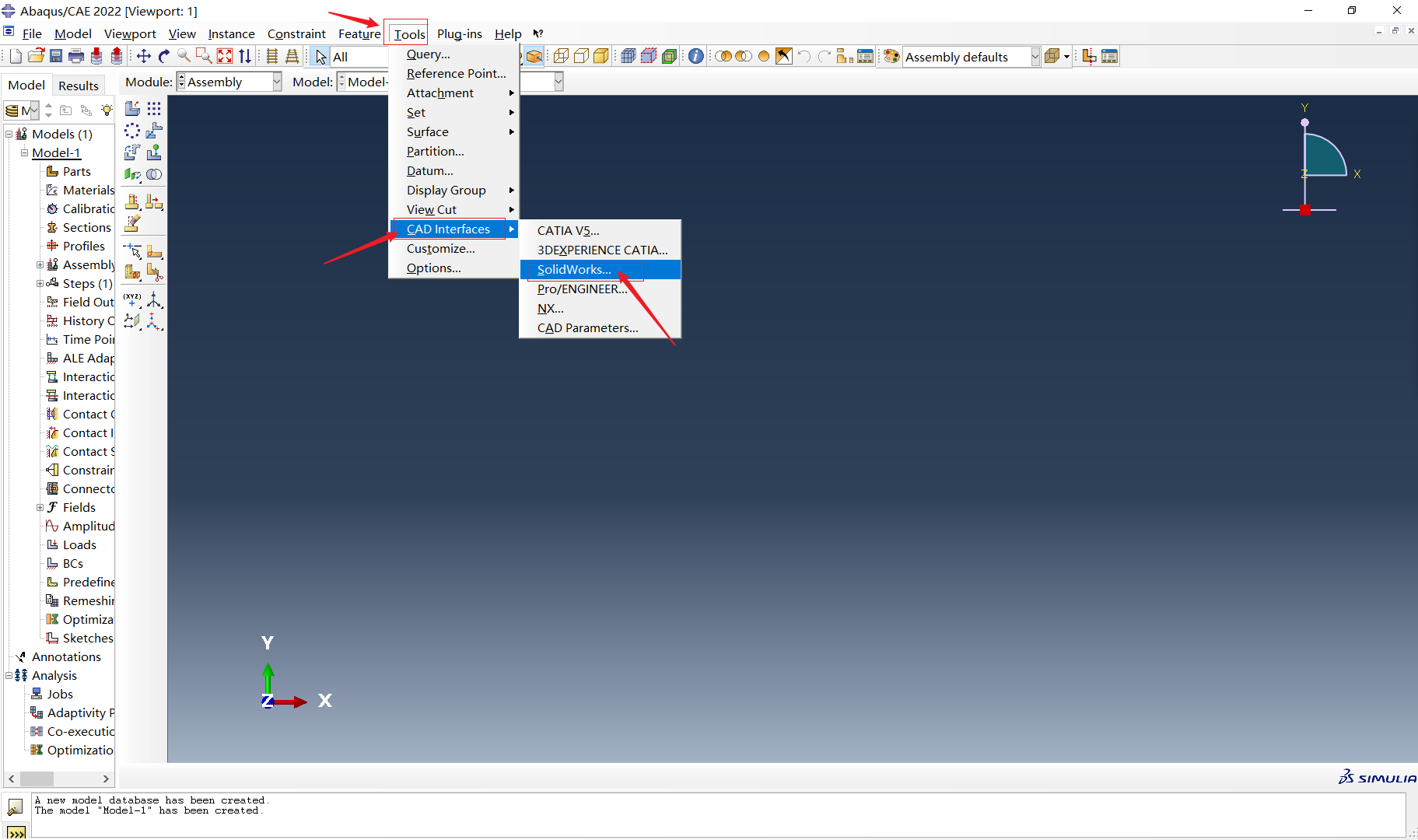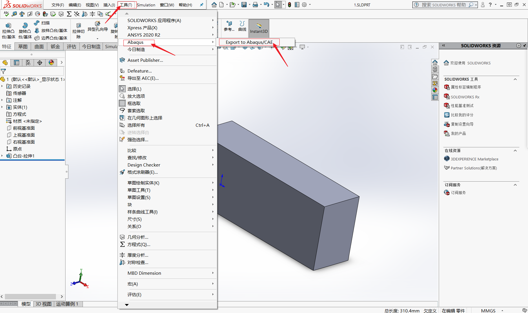 16.回到SW中,点击【工具】-【Abaqus】-【Export to Abaqus/CAE】