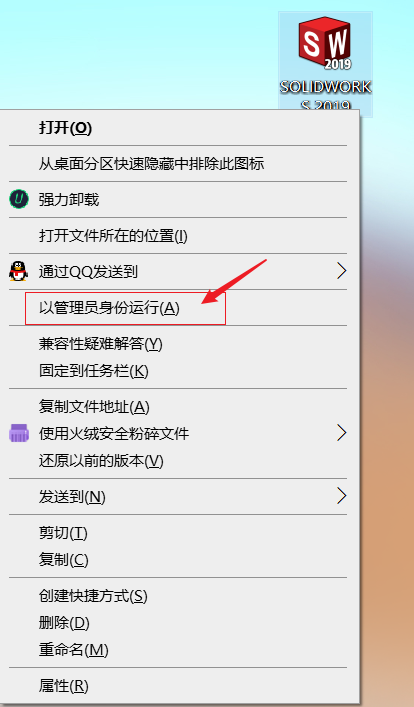6.桌面右击Solidworks图标,以管理员身份运行,(若右击后没有以管理员身份运行的,可以按住Shift后右击)