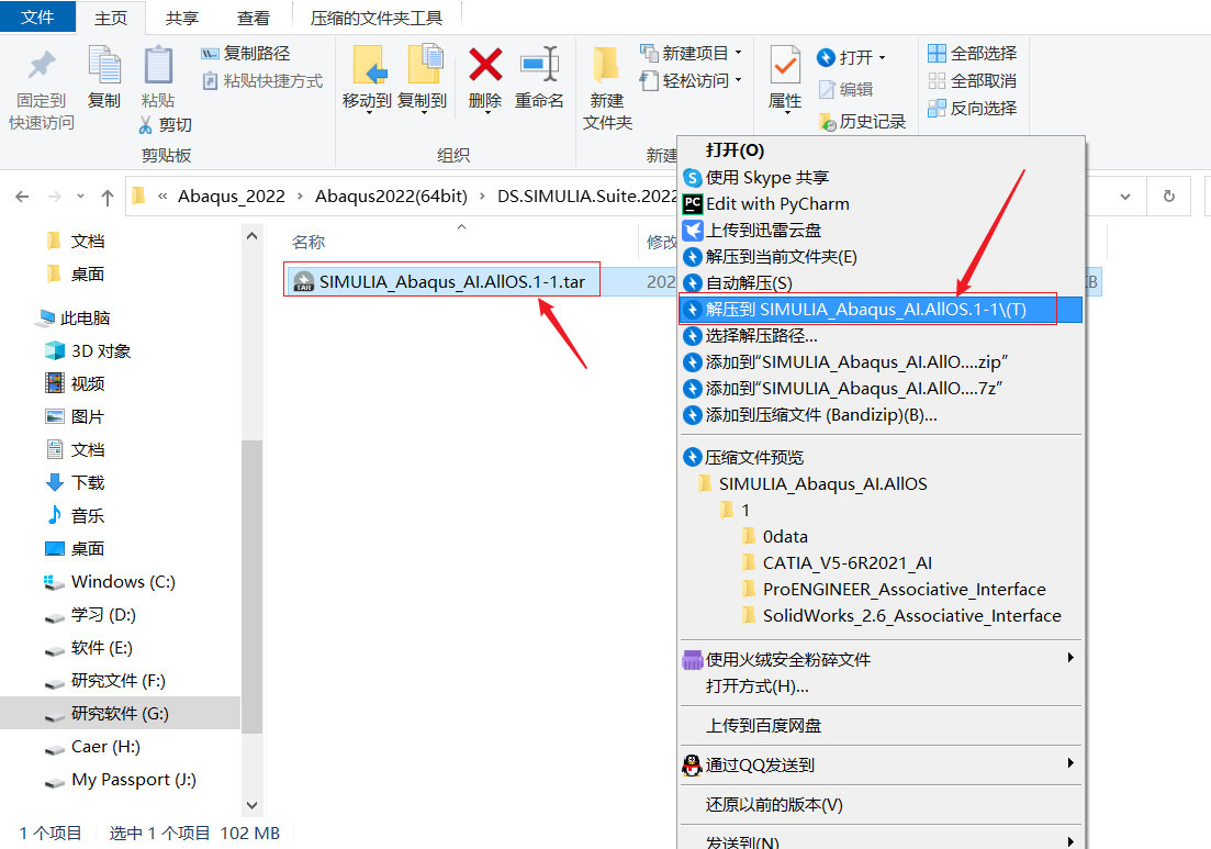 2.找到【SIMULIA_Abaqus_AI】文件夹并双击打开,将【SIMULIA_Abaqus_AI.AllOS.1-1.tar】压缩包解压