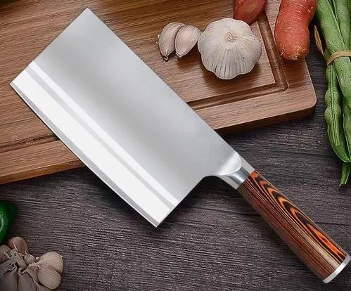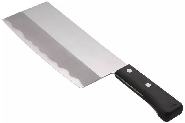 砍骨刀:多用来剁肉骨、剁鸡,或以刀背砸碎蟹脚硬壳等,一般来说,除非是料理高手,或经常需要自己切肉骨、处理骨头者,才需要备用这种专门的剁刀。