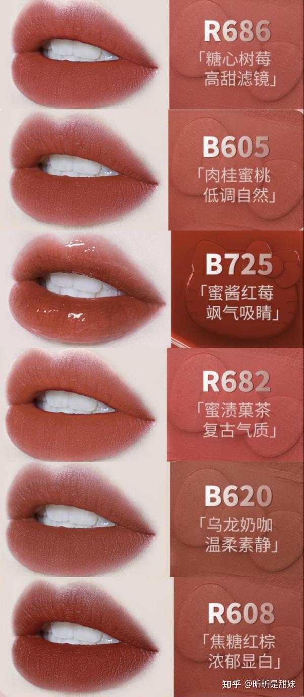 糖心树莓色,要甜到齁鼻,而且哦,每只颜色都不踩雷,随便拿出一只颜色和大牌比都不逊色,叠涂的效果更绝,B605和B725叠涂真是又纯又欲,其他色号搭配也很可,同时拥有6只,随便怎么搭,盲搭也不踩雷,口红搭配大师妥妥滴!