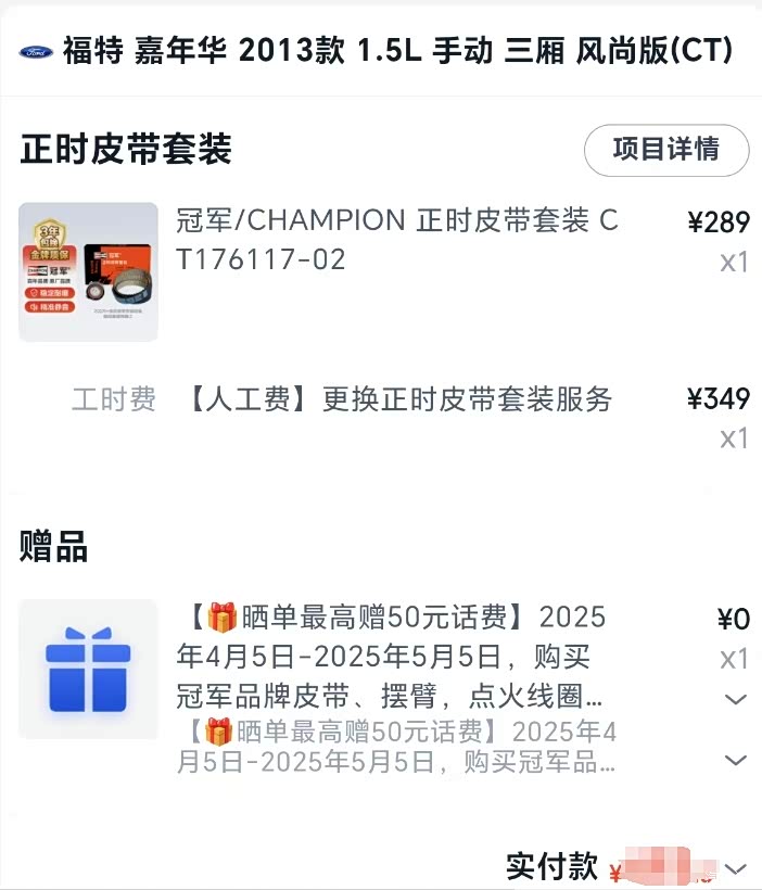 更换了正时皮带,给各位嘉友提供点参考,本车是2014年买的福特13款嘉年华,已经11年多了,行驶了14万公里了,前期保养时修理厂说正时皮带需要更换了,心里总不安,开车的时候油门都不敢深踩了。