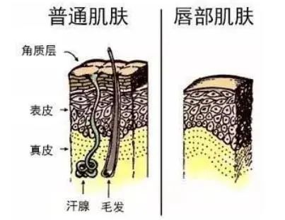 最后,唇部皮肤比脸部皮肤少了一些配置,使得防护力更弱。