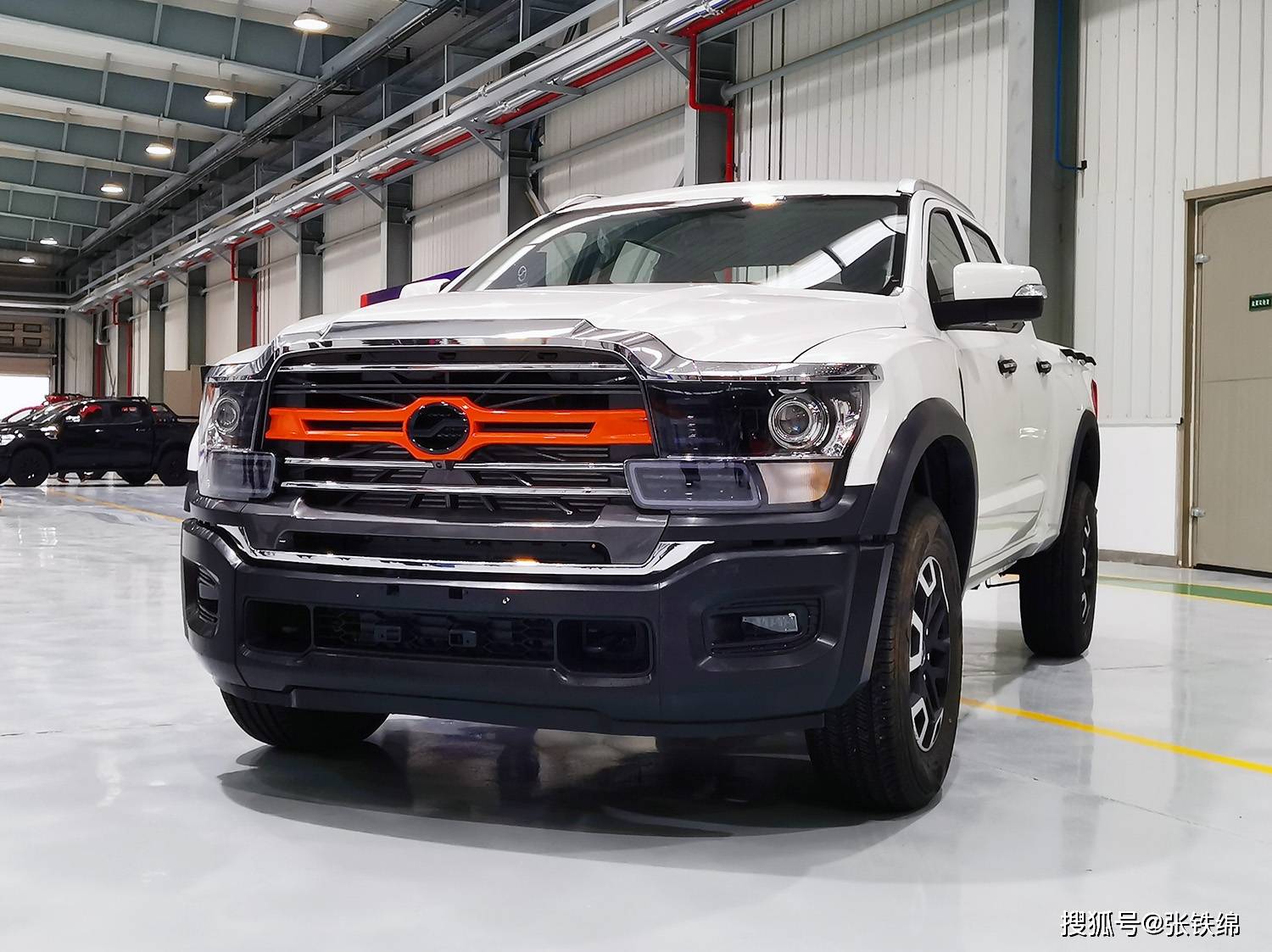 相比此前新车图片给人的大气感,实车给人的尺寸感更强,尤其是车头部分非常的宽厚敦实,给人“移动城堡”的感觉,达到了2045mm的车身宽度在车头部分体现的很明显,在视觉效果上和坦途、猛禽这些全尺寸大皮卡基本看齐了。
