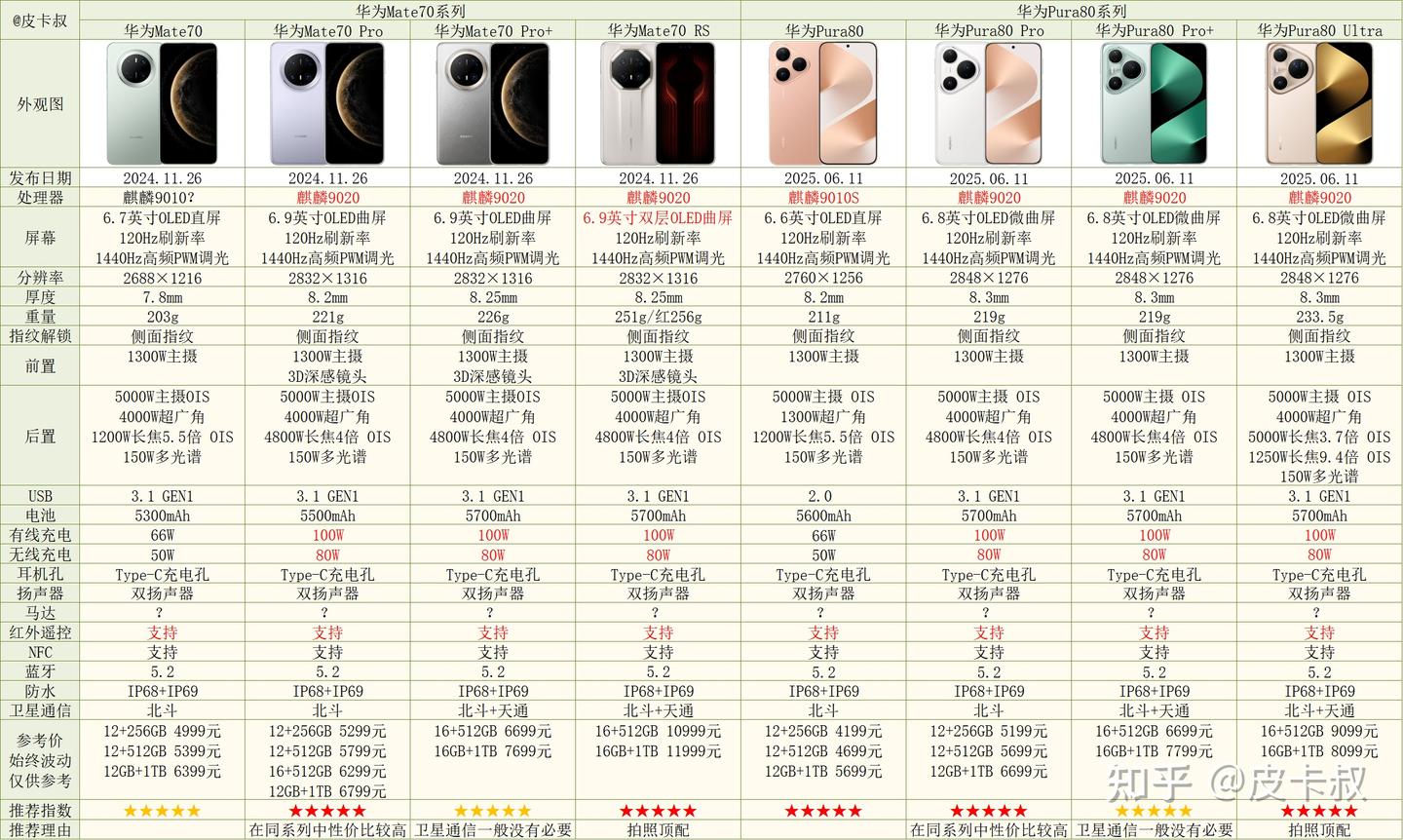 (二)华为手机华为目前在售的旗舰机主要是Mate70系列和Pura80系列。华为Mate80系列即将发布。