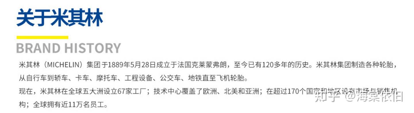 米其林(有几款真的挺不错,虽然价格贵一些)米其林轮胎是属于法国品牌,它也是子午线轮胎的发明者,它的轮胎也是属于全球知名品牌,主打的就是质量可靠稳定,还有技术先进。
