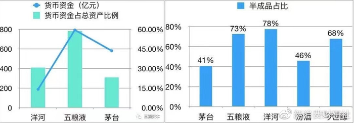 根据2022年三季报测算显示,洋河股份货币资金188.78亿元,占总资产三分之一,总金额仅次于茅台五粮液。资产中同样占比较高的一项是存货,高达162.03亿元,其中主要为基酒的半成品占存货比例高达78%,位列头部白酒上市公司首位。