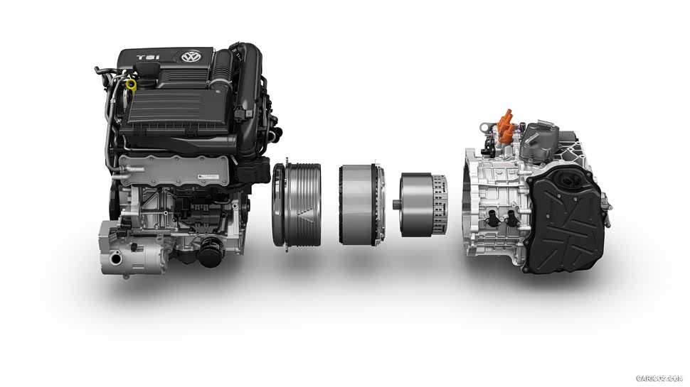 全新帕萨特PHEV搭载的是一套单电机直连式混动结构,发动机沿用汽油版的1.4T高功率版EA211,变速箱虽然代号DQ400e,其实就是在原来汽油版的DQ250 6速双离合(我的蔚揽就是这款变速箱)的前端加了个电机,构成一套P2混动结构。除了大众,宝马530Le,奥迪A6L e-Tron,比亚迪秦DM、传祺GS4 PHEV、荣威ei6、沃尔沃S90L T8等绝大多数插电混动车都采用这种P2结构。