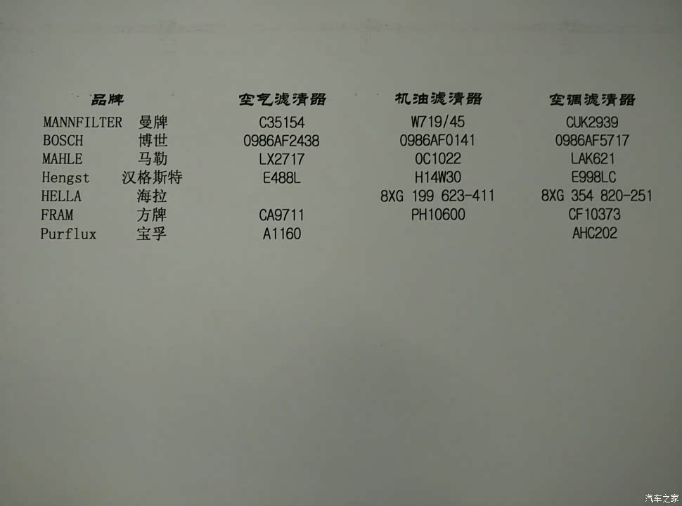 )然后说一下,这七个品牌全部为合资国产,跟咱的车一样。也有进口的,但是贵!个人认为没必要!因为四儿子的也是这玩意。如果有土豪非进口不买,那我就做个友情提示,曼牌和方牌的进口货型号和国内一致,但是博世的不一致!其他品牌目前尚未研究到,见谅。
