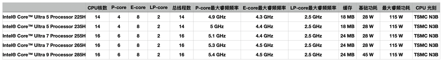 从以上的规格也不难看出,未来主要出货的只有三颗处理器,也就是Ultra 5 225H、Ultra 7 255H以及Ultra 9 285H。
